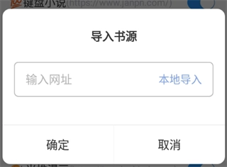 4、按照提示在输入框里粘贴网址,再点击确定按钮,就能完成书源的导入操作了。