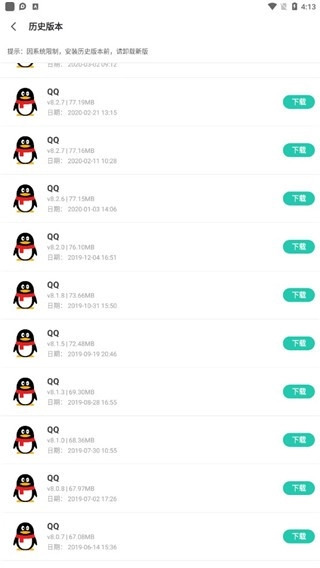 4、进入历史版本,这里有所有版本的QQ可以!