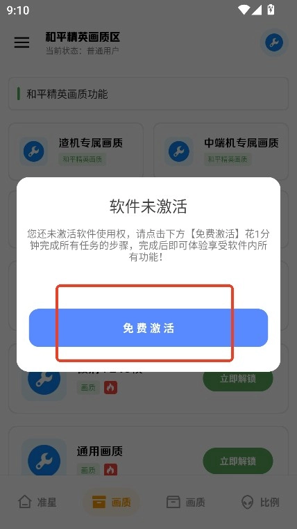 4、在下方的画质功能列表里挑选对应的画质选项,比如【渣机专用画质】,然后点击免费激活按钮。
