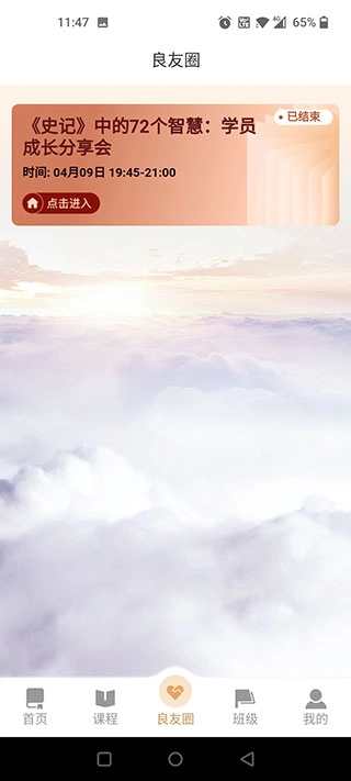 3、最后我们选择良友圈,里面都是对课程领悟好友的分享,你也可以进去各抒己见