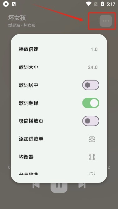3、选择音乐点击右上方的三条杆图标就可以对多种参数进行调节