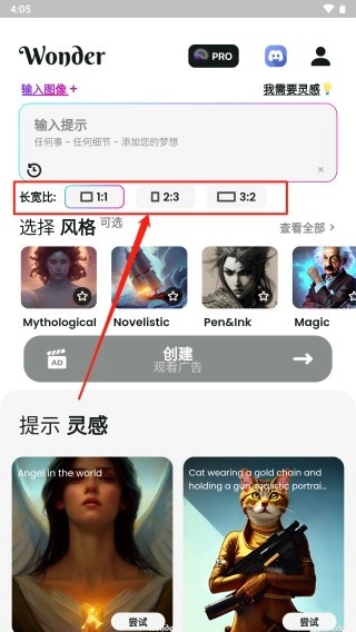 2、提供尺寸选择功能,可以根据需求选择生成图像的尺寸大小。