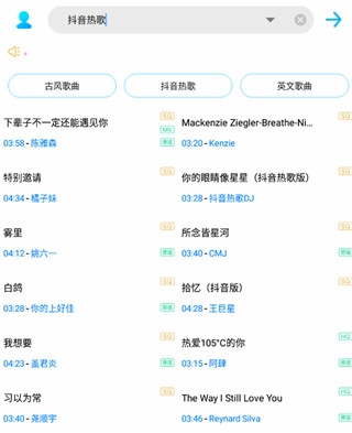 6、支持关键词快速检索,同时涵盖抖音及多个热门音乐分类。