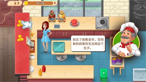 5、客人拿到想要的实物后会留下金币,玩家主动收集金币就能空出位置,方便新客人点单。