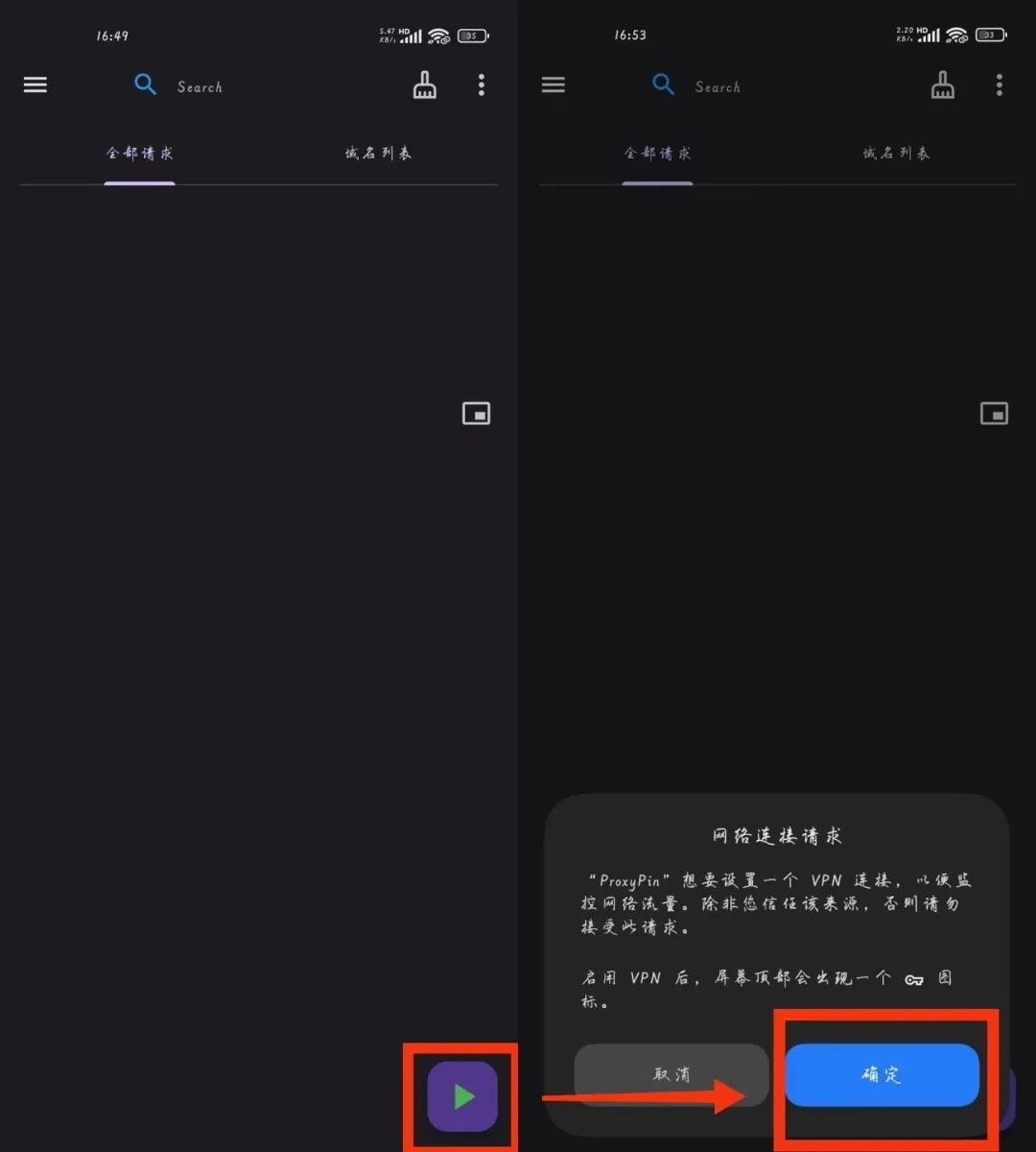 第二步:打开proxyPin,启用HTTPS代理