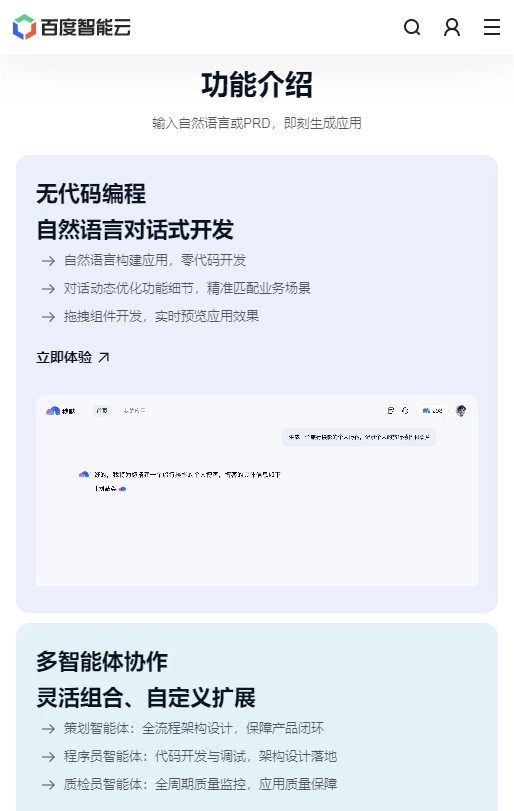 软件占用内存小,小白也可以轻松进行开发,不需要你输入任何的代码,软件会通过你们之间的对话一步步优化应用的功能与细节,满足用户的不同使用场景,精准匹配业务。