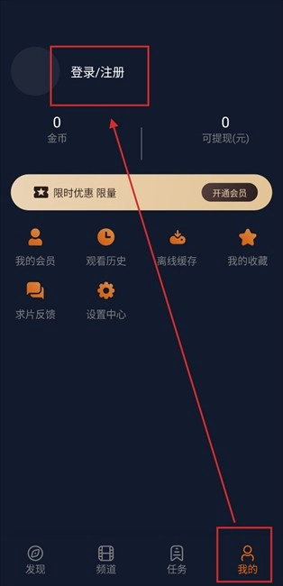 2.这时点击【我的】--【登录/注册】。