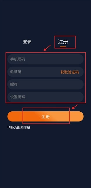 (ps:可使用邮箱注册,这里以手机号为例;)