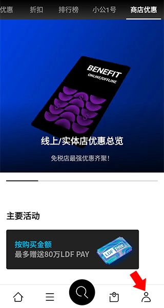 1、接着打开乐天免税店,点击右下角的人形图标,进入个人界面