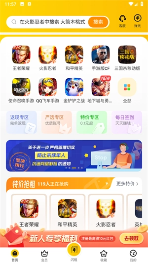 这个租号平台特别好用,专门设置了特惠专区,每天都会限量提供特价的精品账号让大家免费体验;新用户还能领取多种福利,平台每天都会更新推送大量优质的游戏和影视账号资源,而且租号的起步价只要0.8元,性价比非常高。