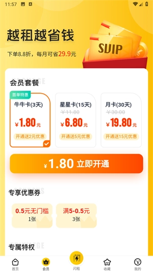 1、会员专享:会员可以享受专享红包和越租越省的优惠,为用户提供了长期租赁的动力和经济实惠。