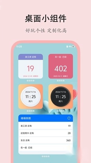 3、把日程管理和记录功能融合起来,具备倒计时提醒、日历查看、纪念日等多种功能。