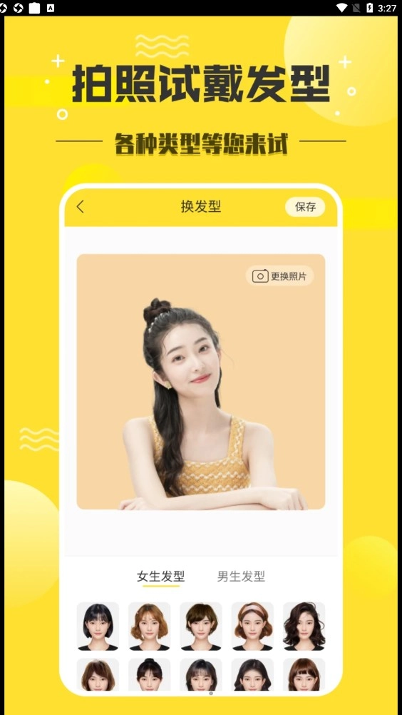 2.拍照时可以自由切换各类发型,实时查看不同发型呈现的效果。