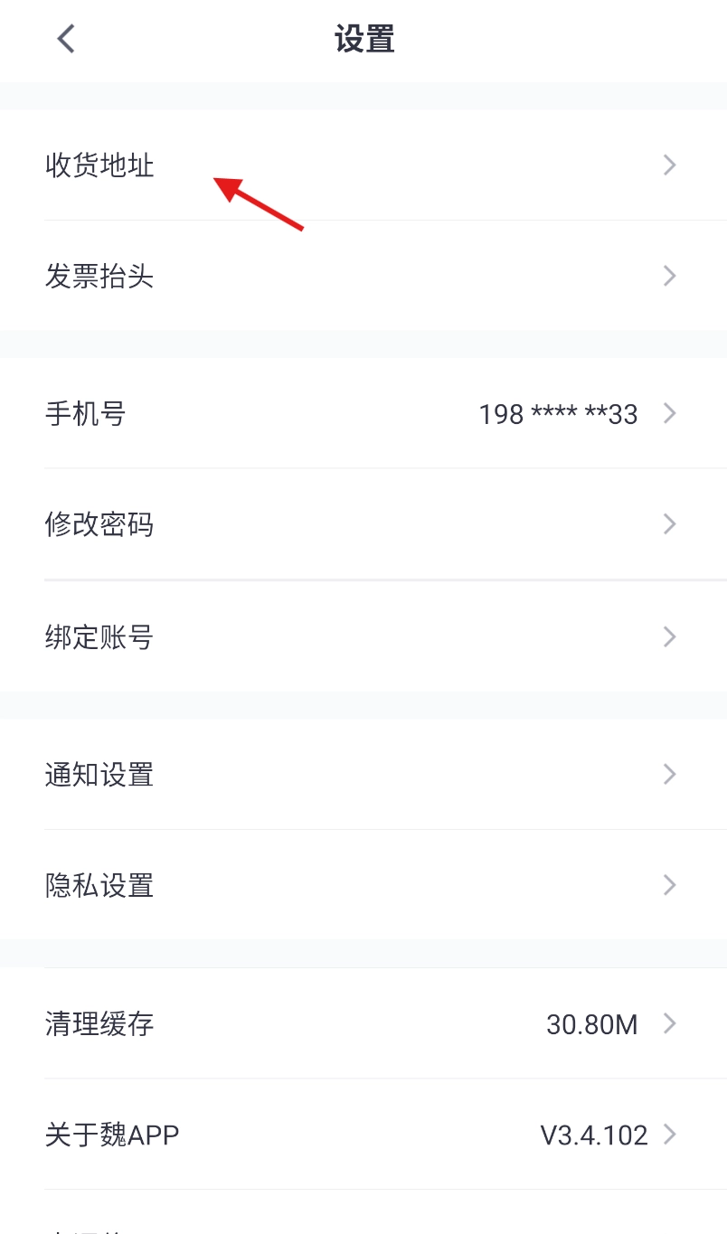 3、在设置界面众多选项中,仔细查找并点击 “收货地址”,进入收货地址管理页面。