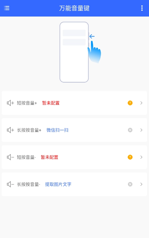 2、快捷功能绑定:可将扫码、截图、手电筒等20+实用功能绑定至音量键组合操作,大幅提升操作效率。