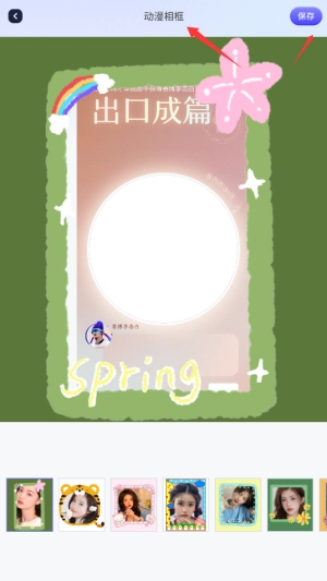 3、选择手机相册中的照片后,系统会自动套用相框效果,点击保存即可生成作品。