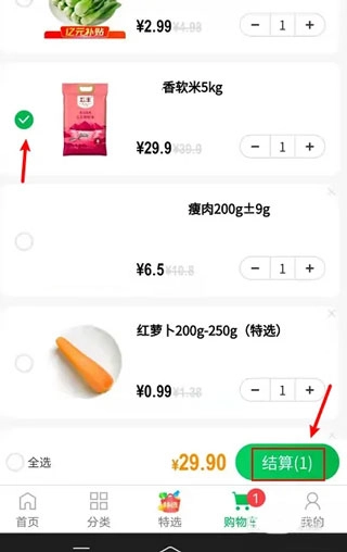 2、选择商品后,再点击“结算”。