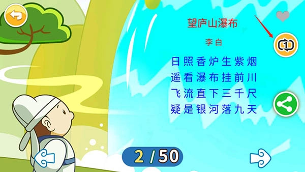 1、在阅读绘本、唐诗宋词等内容时,界面右上角设有爱心图标,点击该图标即可完成收藏操作。