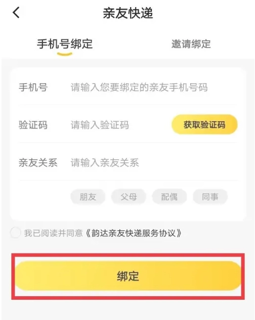 4、输入信息绑定亲友查看对方快递信息。