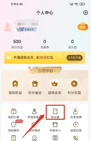 2、进入个人中心,点击【地址簿】。