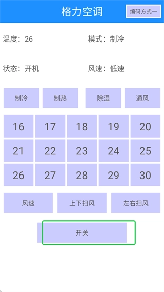 4、接着点击开关按钮,观察空调是否有反应,若有反应则说明连接成功了。