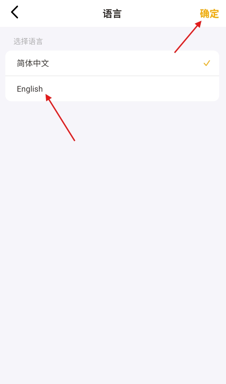 4、在语言选择列表里找到 “English” 选项,点击确认,完成软件语言切换操作。