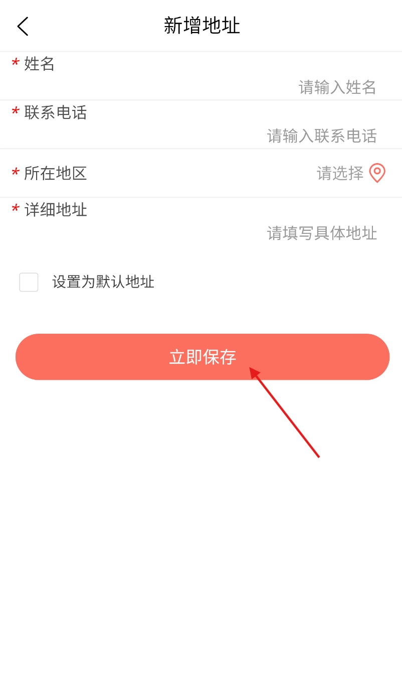 4、进入地址添加页面后,仔细填写新地址的各项信息,确认信息准确无误后,点击“立即保存”按钮,即可完成新地址的添加流程。