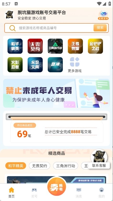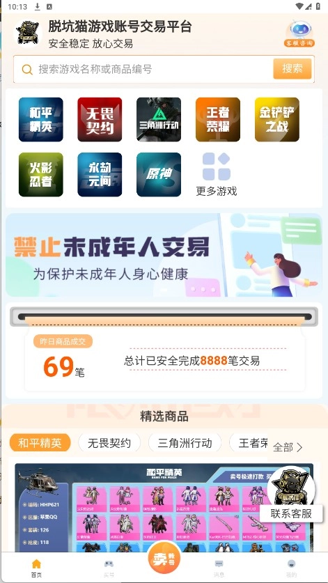 脱坑猫是一款交易便捷的软件,这里会持续更新海量热门游戏账号资源,还提供多项包赔服务保障交易安全。整个交易流程公开透明,能有效保护用户账号安全;同时具备一键估号功能,帮助用户轻松把握市场动态。感兴趣的话,欢迎前往52pkvr体验!