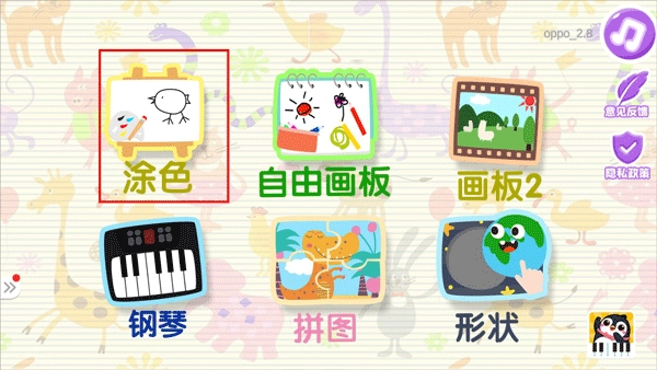 2、新增了颜色、涂色、钢琴、形状、拼图等多种玩法