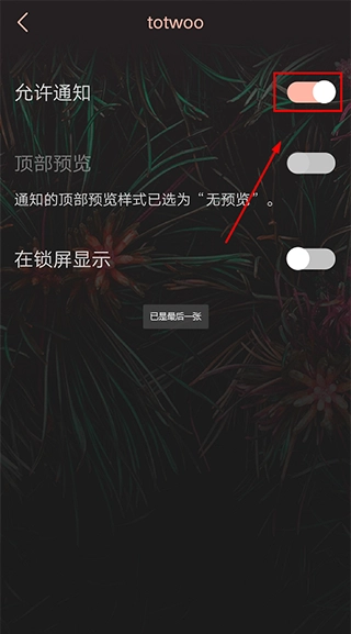 [设置] - [状态栏与通知] - [totwoo] - 打开允许通知及所有相关选项
