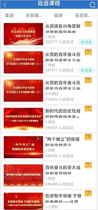 3、随后进入课程界面,在该界面中,点击任意一门课程即可开始学习,完成课程视频的观看便意味着该课程学习结束。