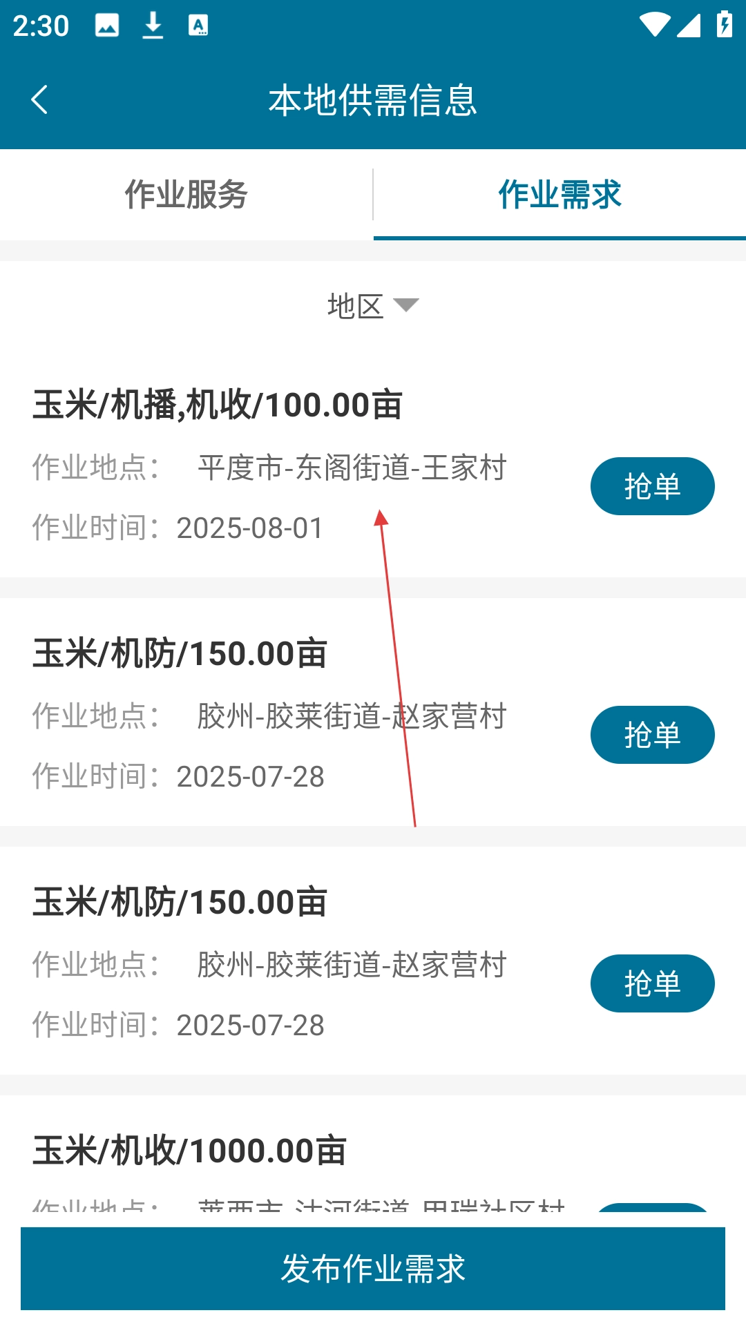 1、打开青岛农机补贴平台,点击【本地作业需求】板块,进入作业需求专区。