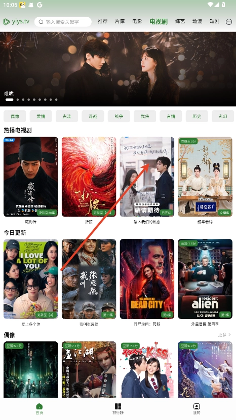 1、打开软件进入主页,这里有当下热门的剧集推荐。