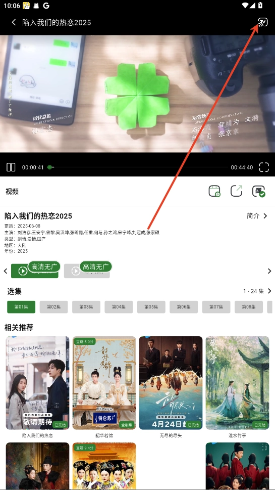 2.点击右上角TV投屏。