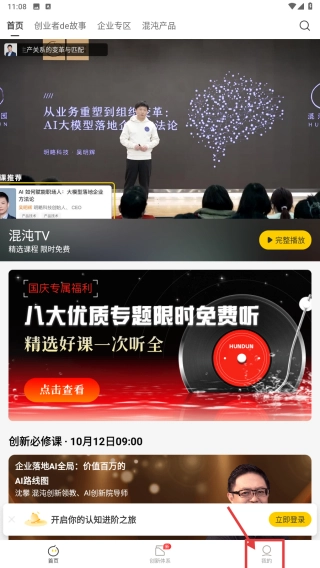 1、启动混沌学习类应用,点击底部的“我的”选项,进入个人中心页面。