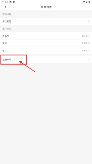 4、在账号设置界面,点击注销账号选项,进行账号注销操作。