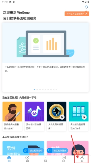 1、启动WeGene应用,点击底部的“我”选项,进入个人中心页面。