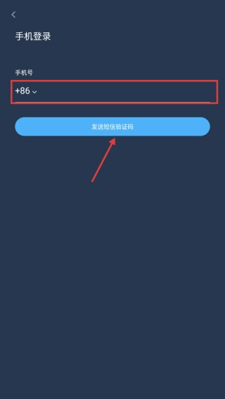 4、在手机号输入页面,输入手机号后点击发送短信验证码按钮,获取验证码以完成登录操作。